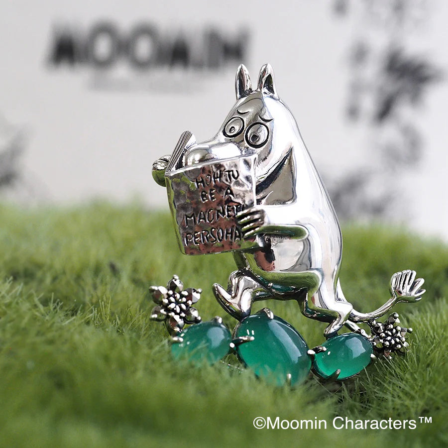 The sight of Moomin with a serious expression reading a book about how to develop a magnetic personality is irresistibly adorable! This adorable brooch pendant will make you want to support Moomin's hard work.
